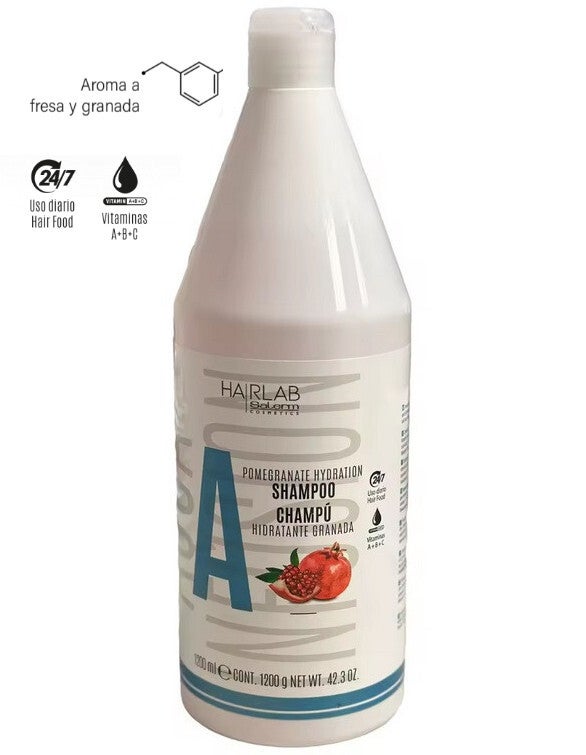 Champú hidratante de uso frecuente con vitamina A, BIC para una limpieza suave y ligera que respeta las condiciones naturales del cuero cabelludo y el cabello. Uso: aplicar sobre el cabello húmedo. Masajear y enjuagar. Compagínalo con el bálsamo hidratante Granada.