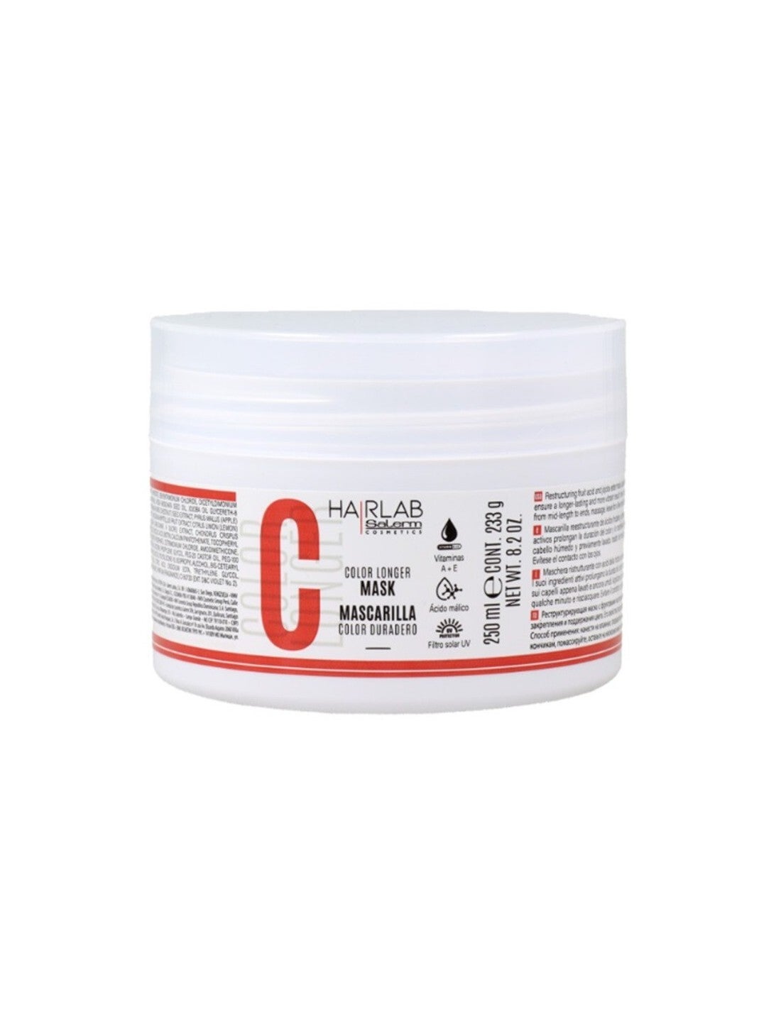 Mascarilla, restructúrante para sellar y mantener el color. Sus activos, a base de ácidos frutales y Estheres de Djoba, prolongan la duración del color y lo mantienen vibrante más tiempo. Uso: aplicar sobre cabello húmedo y previamente lavado, insistir de medios, apuntes, masajear, dejar unos minutos y enjuagar