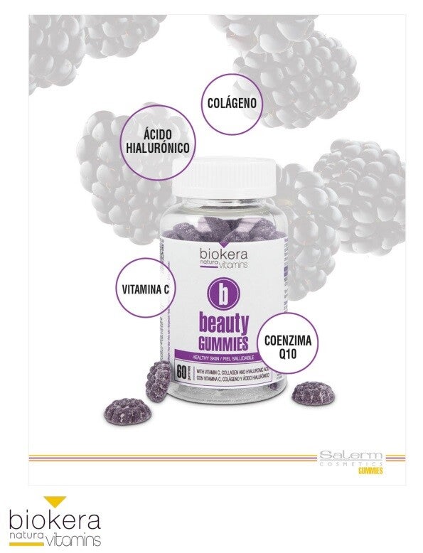 Piel saludable con colágeno, vitamina C y ácido hialurónico. Complemento alimenticio a base de vitaminas colágeno y ácido hialurónico con Endu colorantes para reforzar la salud normal de nuestra piel y la formación de colágeno. Uso: tomar tres gominolas en cualquier momento del día. Tratamiento recomendado durante un tiempo de tres meses, obteniendo los mejores resultados a los seis meses los resultados pueden variar de una persona a otra .sabor mora